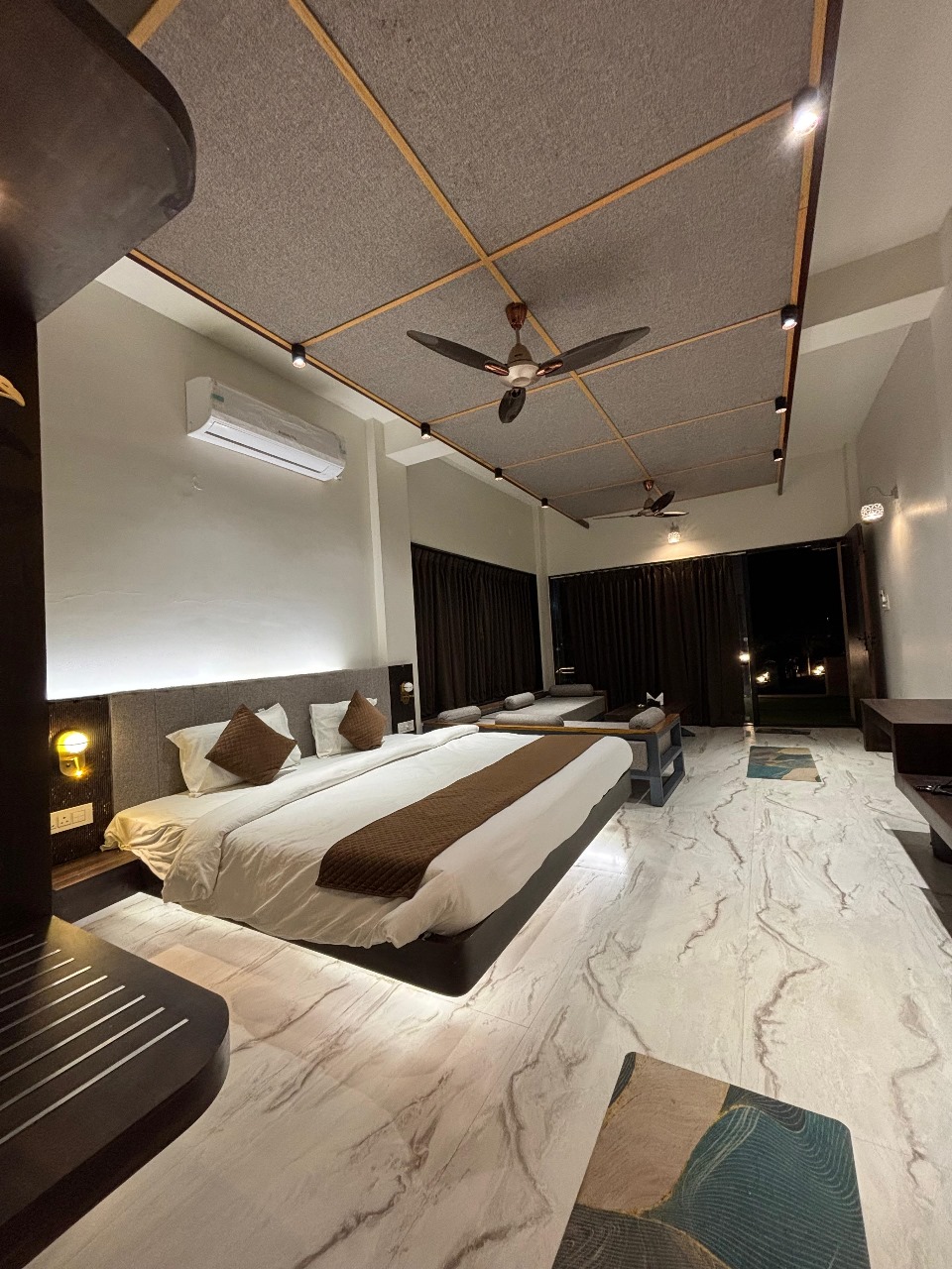 From sprawling green lawns ideal for wedding ceremonies and cultural functions, to beautifully curated aesthetic décor setups, luxurious superior cottages for overnight stays, and our signature pure vegetarian hospitality, every element of Dhruvtara has been thoughtfully created to reflect warmth, comfort, and sophistication.